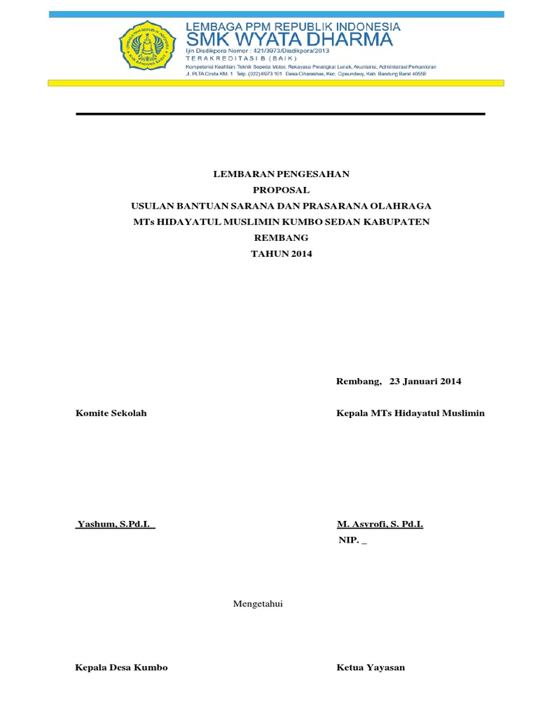 Lain satuan Rp. Berikut ini adalah contoh dari lembar pengesahan proposal usaha. Bukan hanya contoh lembar pengesahan makalah maupun kegiatan praktik lainnya dalam membuat proposal bantuan dana Kamu juga perlu menemukan contoh lembar pengesahan tersebut yang pas.